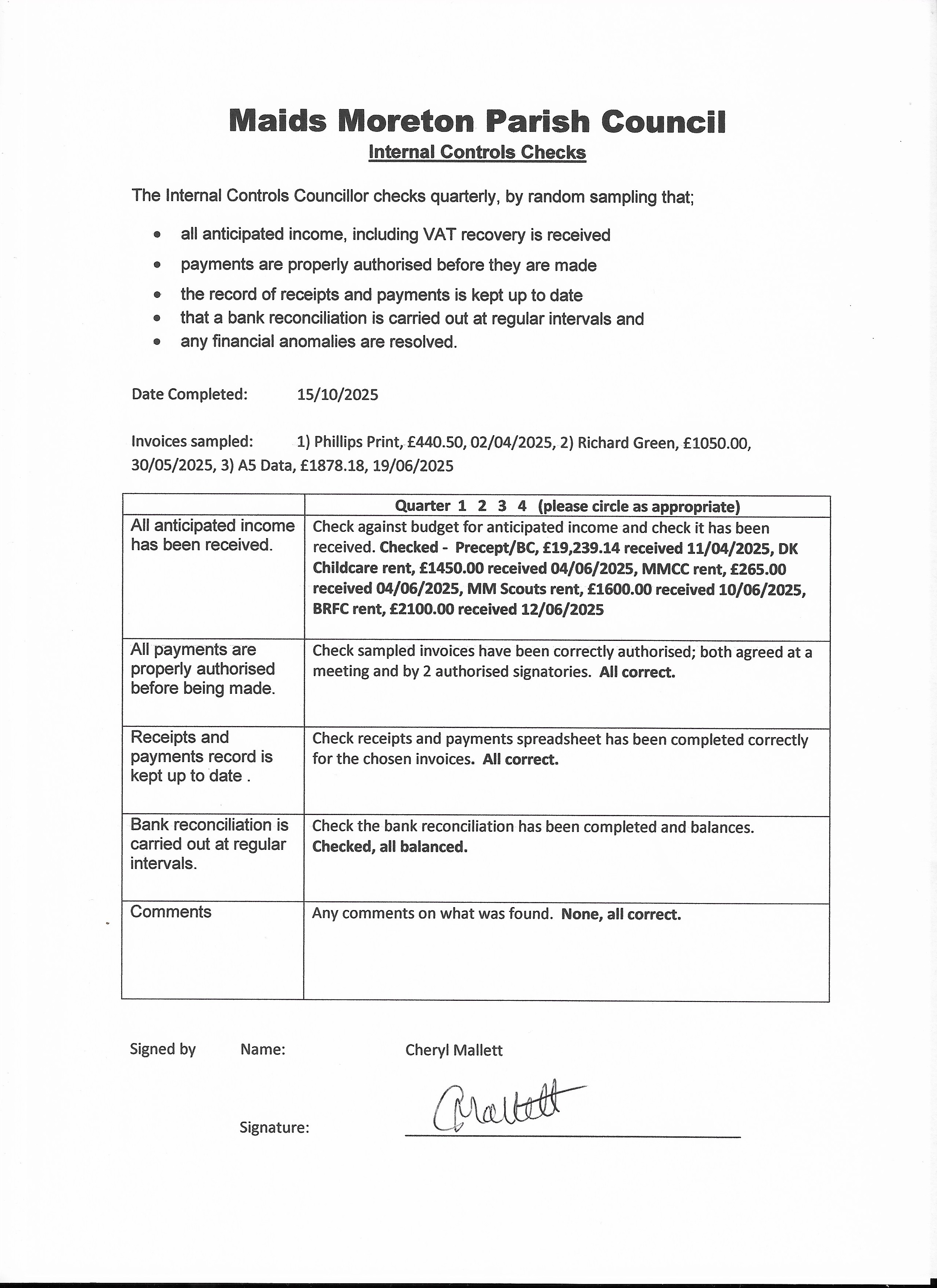 Notice of Conclusion of Audit 2024-2025July 202501/04/2024 - 31/03/2025